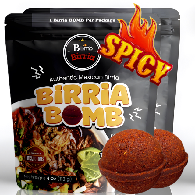 Birria Bombs – a delectable explosion of flavors! Experience the rich taste of our birria seasoning helper, expertly crafted for an unforgettable culinary delight. Become a birria master from the comfort of your home.